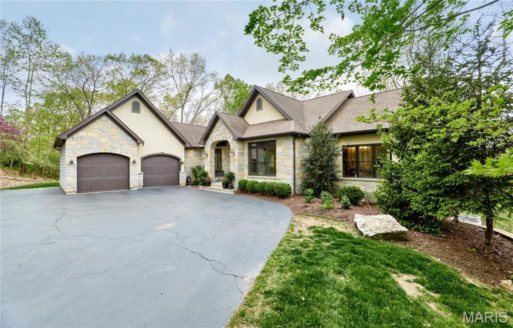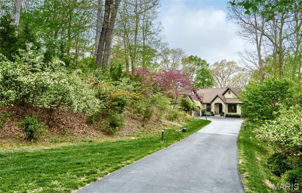 Exceptional custom ranch on a private 2-acre lot, ideally positioned within a gated enclave overlooking Paradise Valley Golf Course. An impressive stone exterior and welcoming covered porch set the tone for this thoughtfully designed home. Rich wood flooring extends through the entry foyer, office/den, formal dining room, and great room. The foyer is flanked by a private office with French doors and an elegant dining room accented by a tray ceiling. The great room impresses with a dramatic wall of windows, a soaring 12-foot tray ceiling with custom lighting, hardwood floors, and a striking stone fireplace, offered as a decorative-only element. The gourmet kitchen is designed for both everyday living and effortless entertaining, anchored by a professional-grade Viking stainless steel gas range with double ovens, commercial-style burners, and an integrated griddle. Custom cabinetry, granite countertops, and an expansive center island with breakfast bar seating are complemented by a built-in drawer microwave with child-lock feature. A light-filled sitting room with French doors opens to the large side deck-creating seamless indoor-outdoor living with scenic views. The stunning main-level primary suite overlooks a private, wooded backdrop and is enhanced by crown molding, a deep tray ceiling, and a cozy fireplace. A spacious walk-in closet adds to the suite's appeal. The spa-inspired primary bath offers a freestanding soaking tub, dual vanities, and a custom walk-in shower with two separate shower spaces connected by a distinctive half-moon bench. A large window fills the space with natural light, while a separate water closet enhances the sense of privacy and retreat. The spacious main-level laundry room is well-appointed with abundant cabinetry, generous countertop space, and a utility sink, providing everyday convenience and functionality. The finished lower level offers a spacious family room, a full bath, and four additional bedrooms, one of which is currently utilized as a home gym. Multiple lower-level bedrooms feature walk-in closets, and one includes a private en-suite full bath. The family room provides direct access to the back deck, complete with new outdoor lights (2026) and new hot tub (2020), creating an ideal setting for relaxation or entertaining. Additional highlights include an irrigation system and newly updated landscaping completed in 2026.