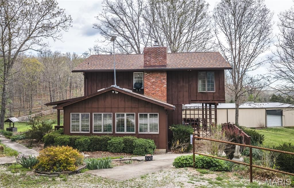 Tucked away east of Salem and surrounded by the beauty of the Mark Twain National Forest, this stunning 80-acre property that offers the perfect blend of privacy, comfort, and outdoor recreation.The home features 4 bedrooms and 2.5 baths, including a versatile main-level mother-in-law suite that could easily serve as your primary suite with the other 3 bedrooms on the upper level. A recently remodeled kitchen, rich hardwood floors, and a warm, inviting living room with a wood-burning fireplace create a cozy, welcoming atmosphere. The enclosed sunroom provides the perfect spot to relax and take in the peaceful surroundings year-round.Outside, the property continues to impress with a detached garage and an expansive 142'x70' steel pole barn, formerly used as an indoor riding arena, offering endless possibilities for hobbies, storage, equipment, or livestock. A backup generator adds peace of mind, ensuring comfort in any season. Looking around, you see a landscaper's dream with tiered flower beds all around the home, an old school well house, a cellar, and new steel fencing. The land itself is a true highlight, featuring mostly wooded acreage with a serene creek winding through it, visible from multiple points in the home and on the nice deck, complemented by beautiful pine groves and mature oak trees. Open areas that are perfect for horses, food plots, adding additional buildings, or other animals. Abundant wildlife makes for excellent whitetail deer and turkey hunting, while the nearby Meramec River offers even more opportunities for outdoor adventure just minutes away.An opportunity to own a secluded, peaceful property in an unbeatable setting, this is country living at its finest.