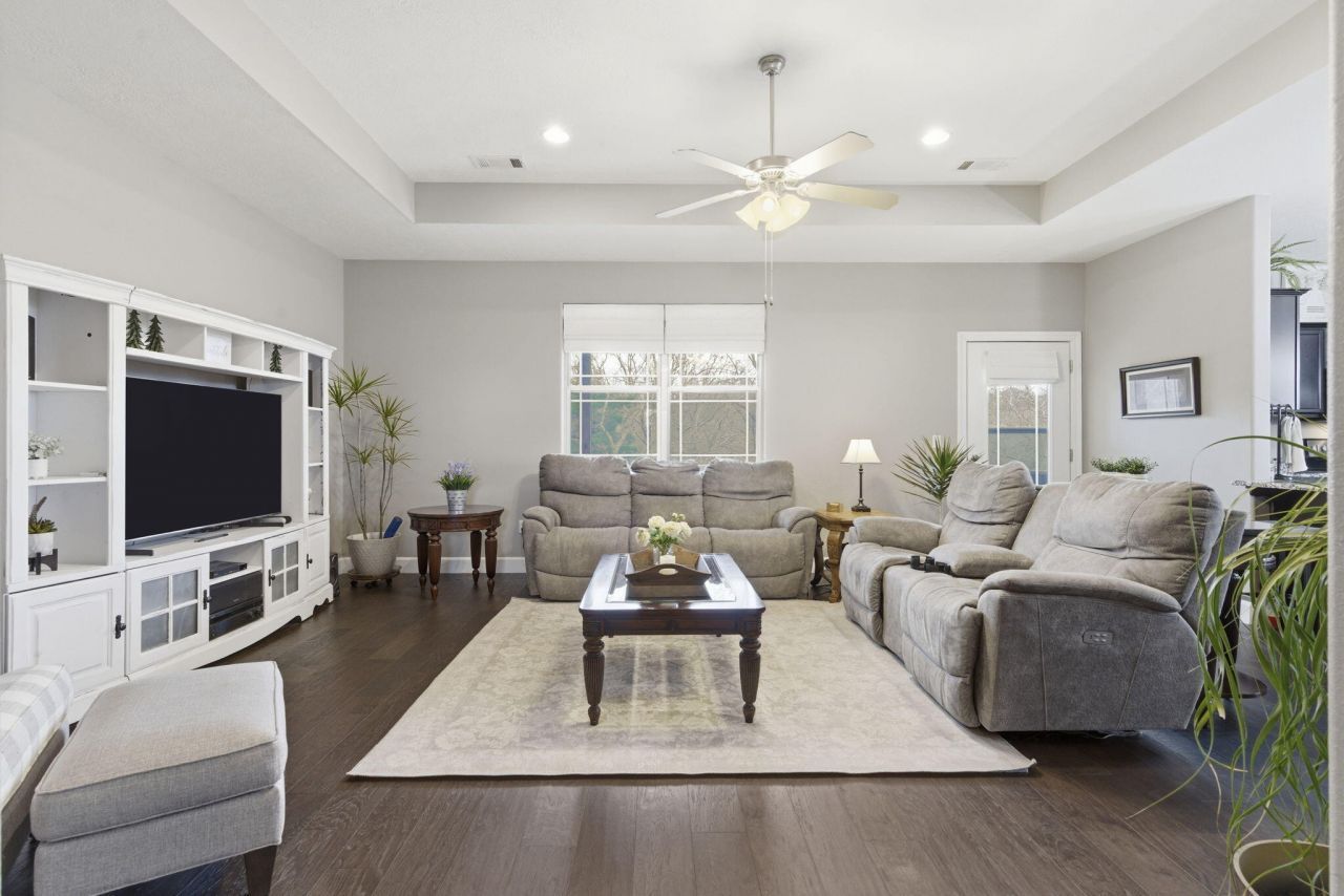Immaculately cared for home with stunning Ozark views on over an acre! This spacious 3 bedroom, 2 bathroom home offers over 1,900 square feet of living space plus a versatile flex room above the garage perfect for a home office, hobby room, or even a fourth bedroom. The main living area is warm and inviting with abundant natural light and an open concept layout that flows seamlessly between the kitchen, dining, and living spaces, creating the perfect setup for everyday living and entertaining. The kitchen features granite countertops, ample cabinet storage, a pantry, and generous dining space nearby for gathering with family and friends. The primary suite is tucked away on its own end of the home, offering privacy along with a soaking tub and custom walk-in shower. Step outside to enjoy the covered back deck overlooking peaceful wooded views, relax in the hot tub, or gather around the fire pit under the stars. A 16x16 John Deere room provides excellent storage for outdoor gear and equipment. Nestled in a fantastic location with quick highway access and just minutes from everything Branson has to offer!